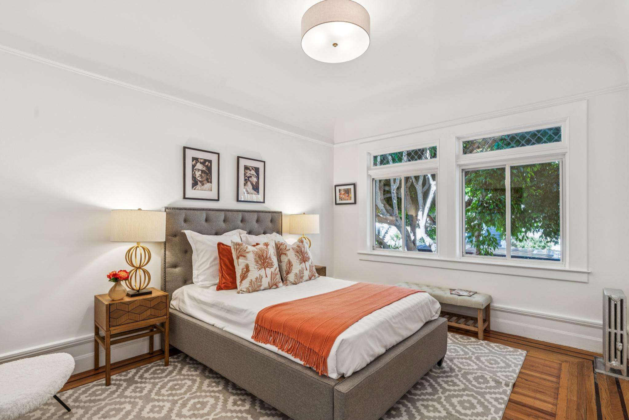 The lush and verdant trees lining the front of the building provide a private and peaceful outlook from both bedrooms. 1 car parking and additional storage complete this wonderful home. Walk to a multitude of restaurants, shops and grocery stores, as well as Alta Plaza Park just a block away.